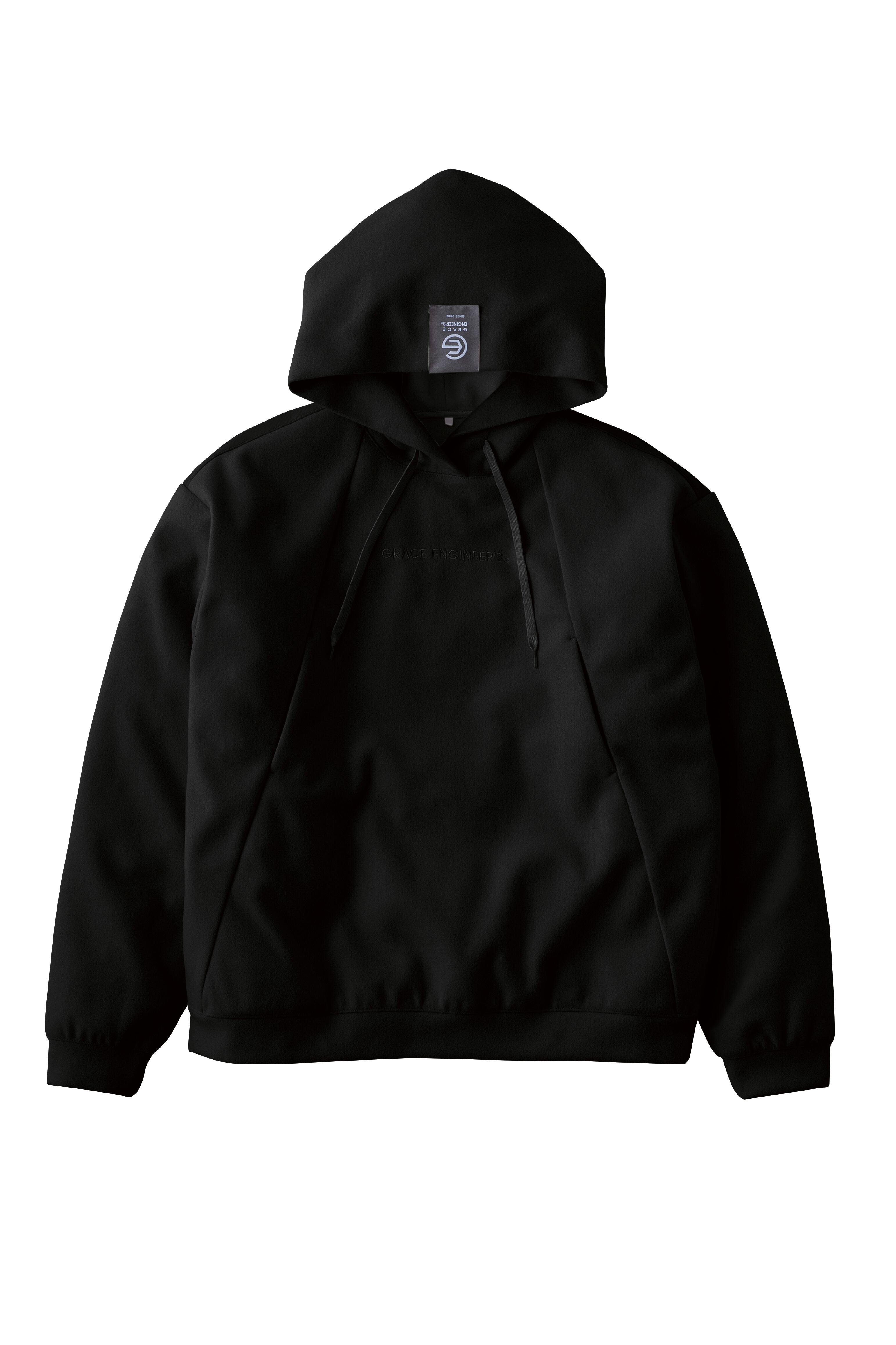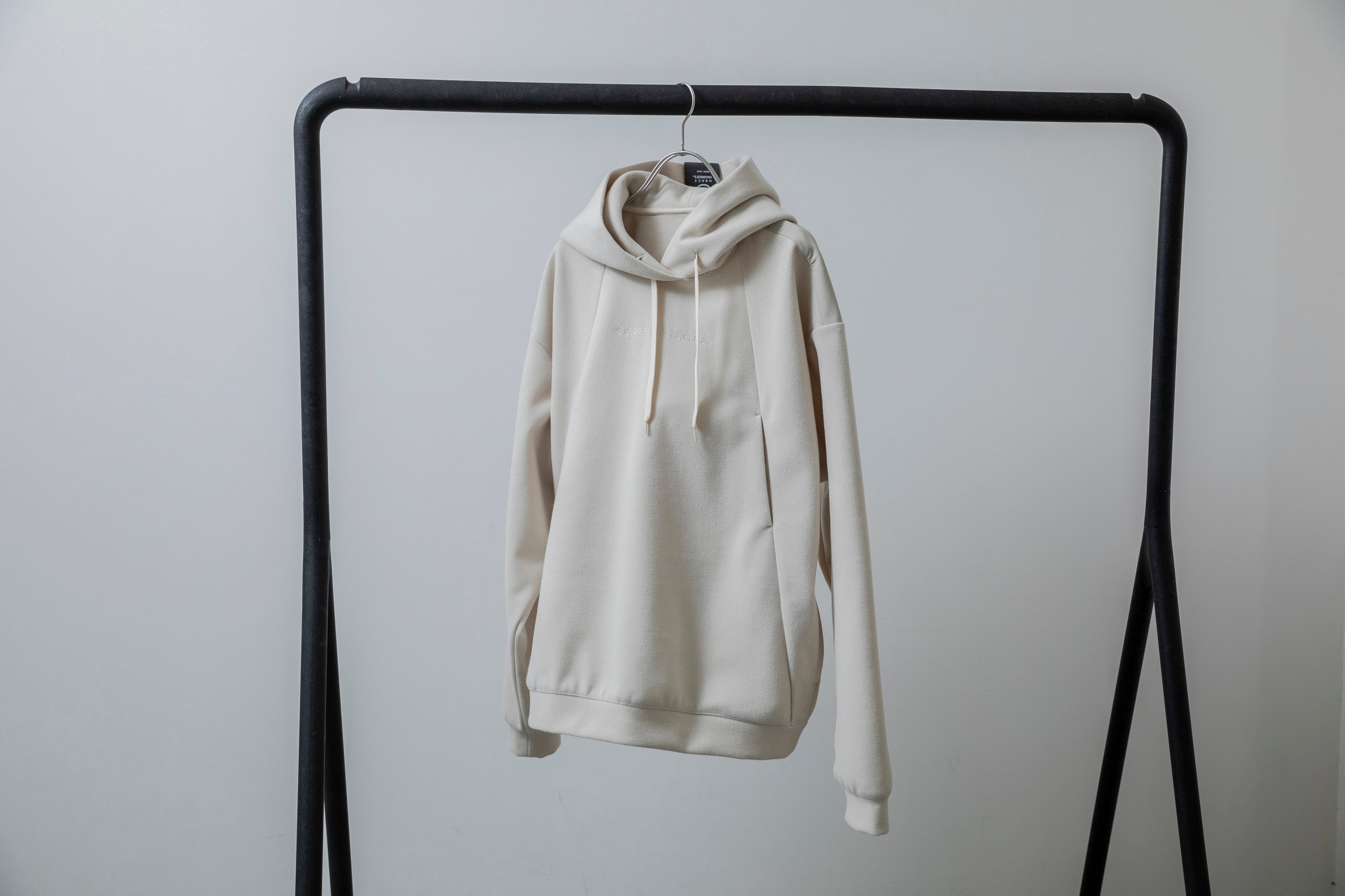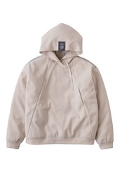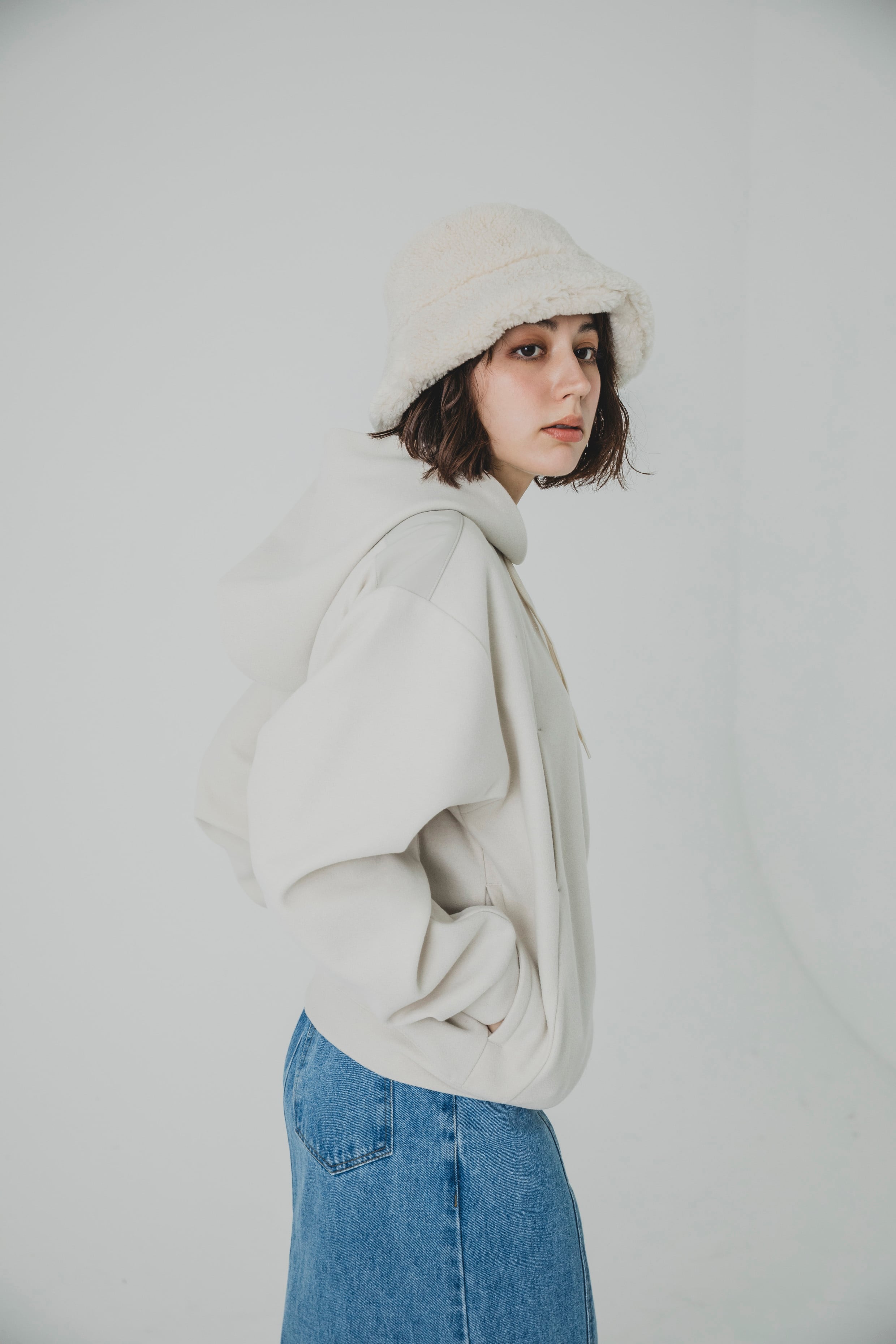サロペット専用パーカーである“サロペ・デ・フーディー”がアップデート。サロペットの胸当て部を意識した特徴的な位置のポケットもデザイン的にワンランクアップ。サスペンダーで擦れやすい肩部分の補強布など、好評のディテールも健在。生地は温もりと優しさを感じるメルトンライクな表面と、着やすさを考えたプレーンな質感の裏面なダブルフェイス生地。ヒップオープン機能との相性を考えた丈感なのもこだわりポイントです。