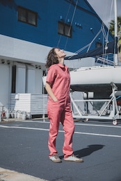 大人気のヒップオープン機能は、これまで問題だったお手洗い問題を克服しました。しかし、夏の暑さ対策までは出来ていませんでした。この度、速乾性がある夏素材でムレを軽減するベンチレーションメッシュを多数用いた女性のための夏専用ツナギをリリース。カラーも女性らしいくすみカラーでスポーティに、定番ネイビーも夏らしい色味にしてあり、見た目と実用性の両面から気分が上がる他にはないツナギです。