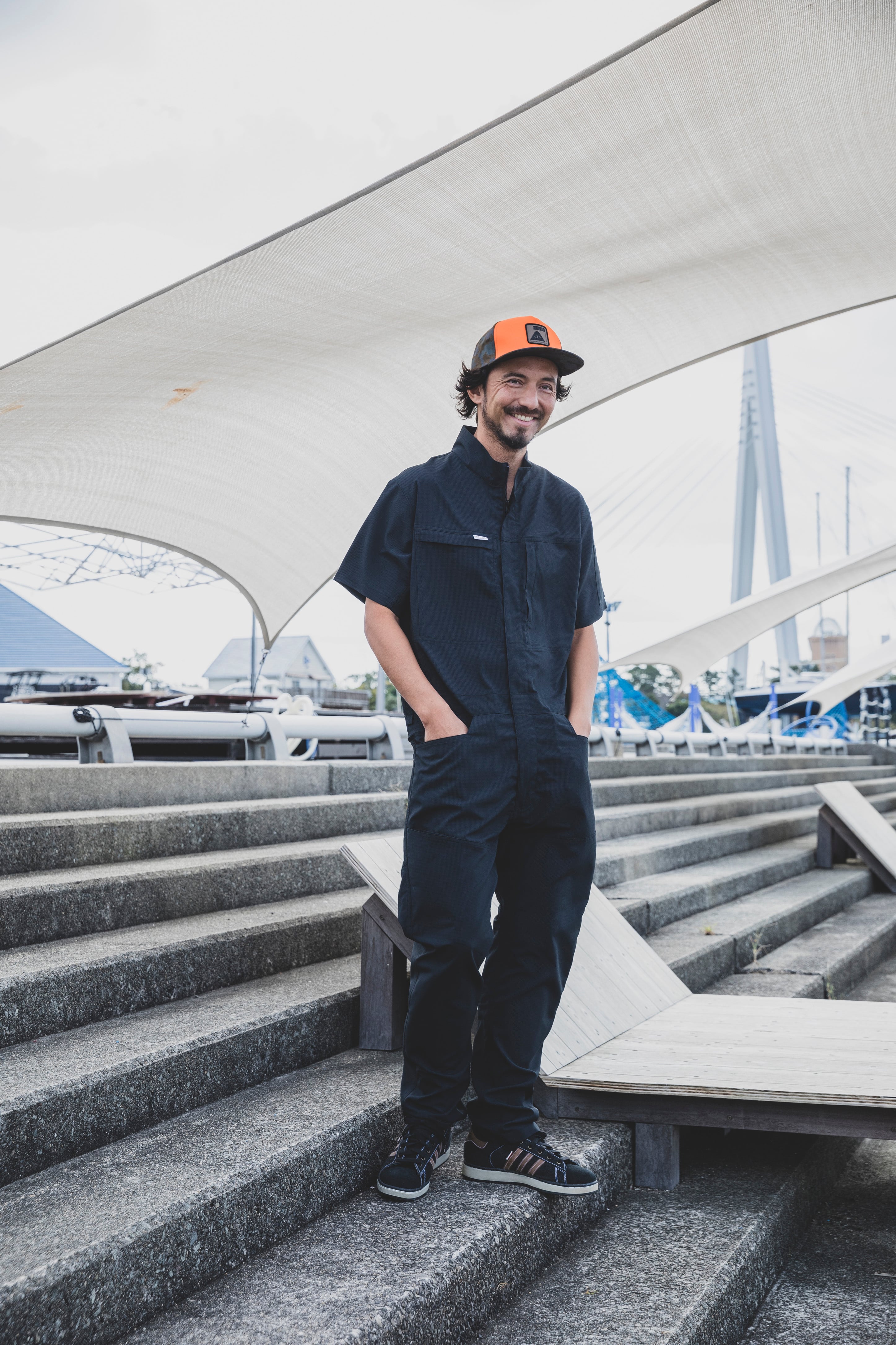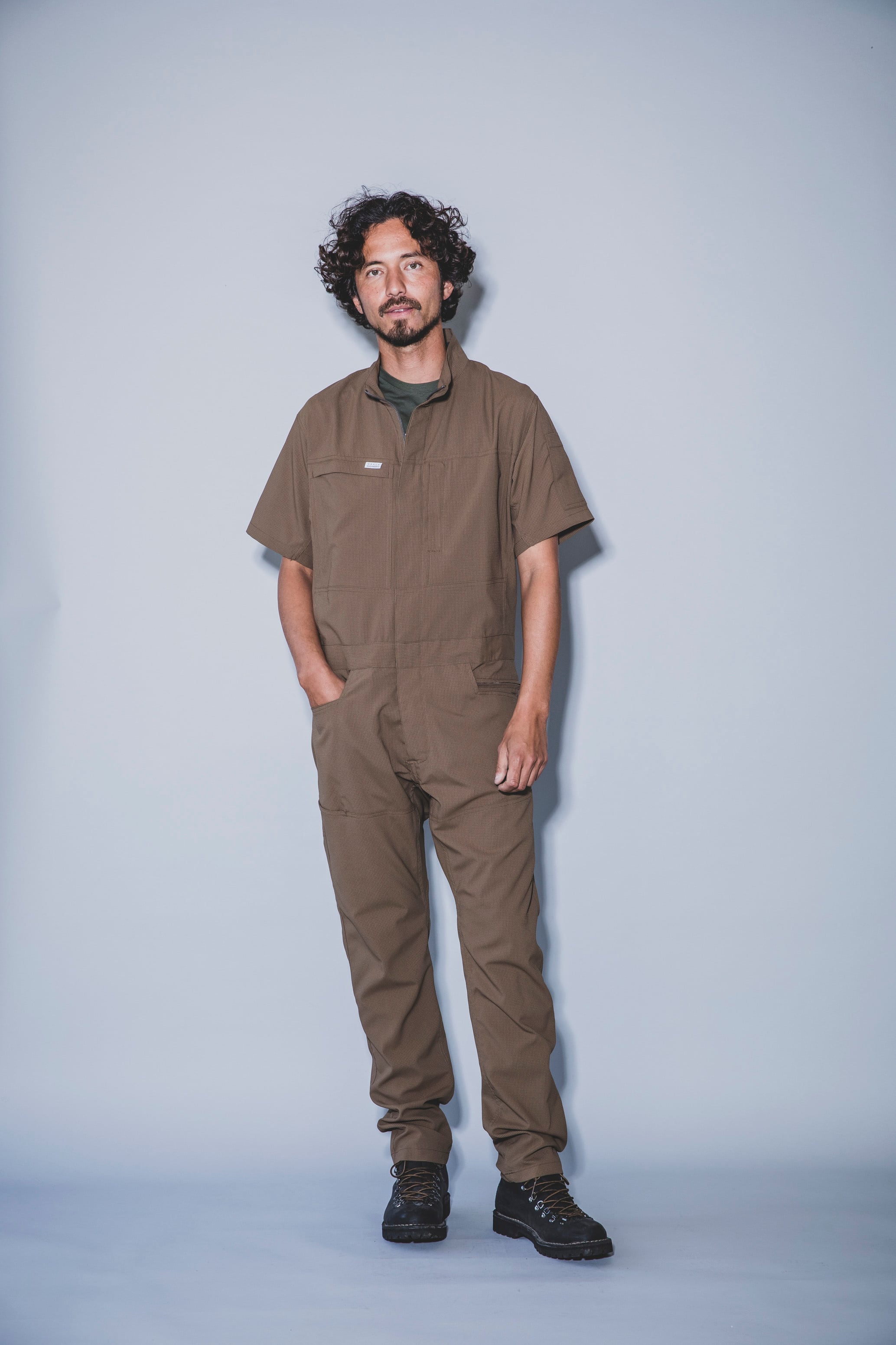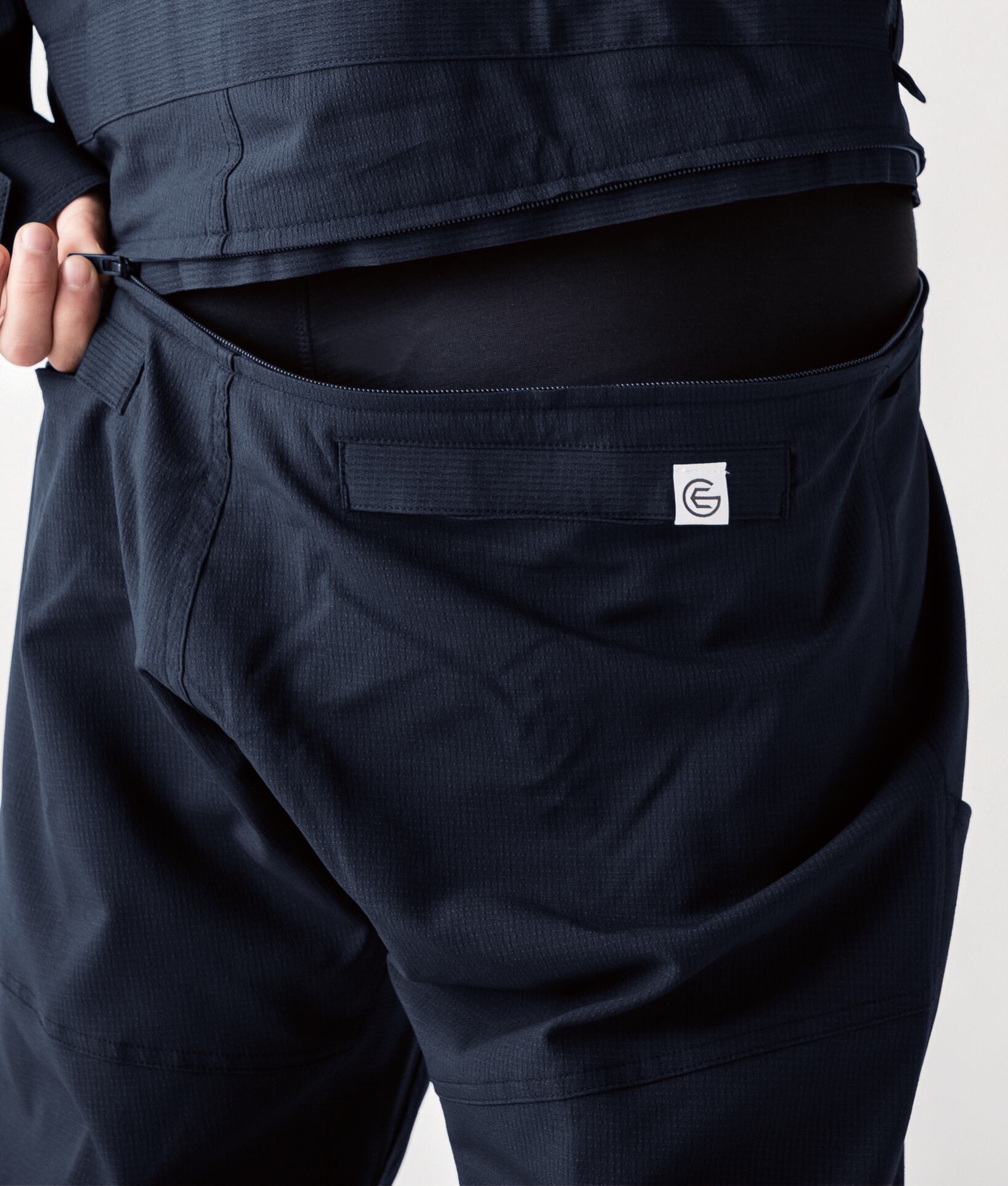 格子状の織りの間に空いた穴から通気性を確保出来る特殊生地を使用。生地全体から清涼感を感じられるのに加え、軽量であるのも特徴。暑さによるストレスのみならず、大好評の特許取得ヒップオープン機能『GRACE BACK』も搭載ですので、お手洗い時のストレスからも解放されます。ファスナー付きの胸ポケットやスマホ用ポケット、金具類も表面に出ていないプロ仕様の本格夏ツナギです。